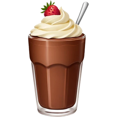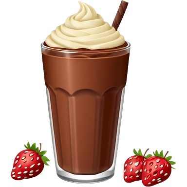 Un vaso cubierto de chocolate que arriba se vea crema batida mym y fresas encima emoji