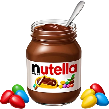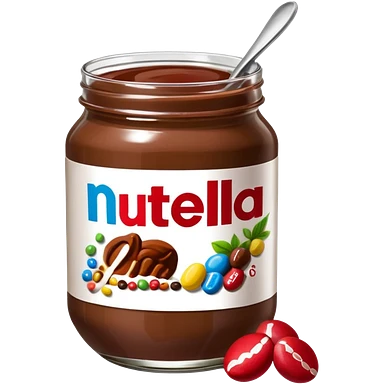 Un vaso cubierto de nutella arriba fresas y mym emoji
