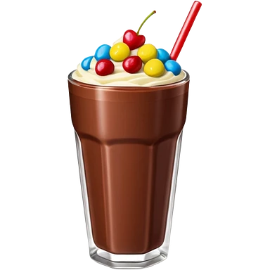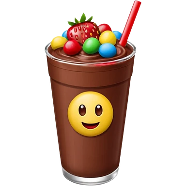 Un vaso cubierto de chocolate que arriba se vea crema batida encima M y M y fresas encima emoji
