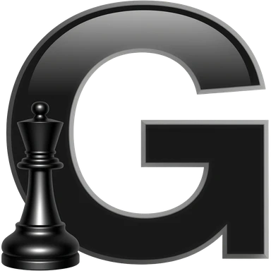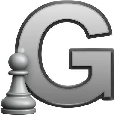 GIF 128x128 Discord, fundo transparente. ♟️ pequeno à esquerda de “G” maior. Preto e branco, minimalista, alto contraste. Centralizado. Animação leve de piscar (fade), efeito respirando emoji