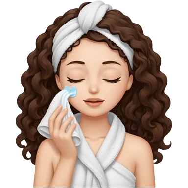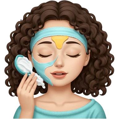 girl brunette with long curly hair getting a deep facial cleansing eyes closed emoji
