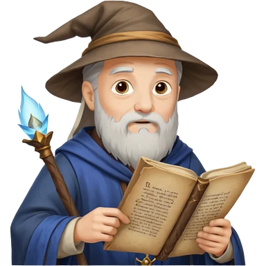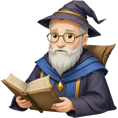 Old Scholar Wizard – gray beard, reading ancient scroll. emoji