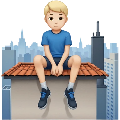 Ragazzo seduto su un tetto di un palazzo, con le gambe a penzoloni sul vuoto emoji