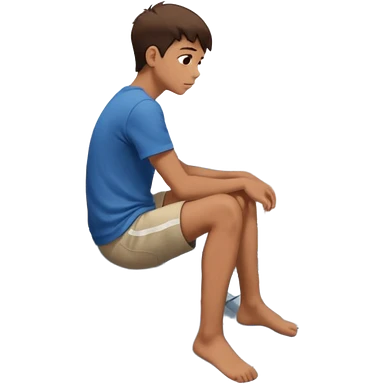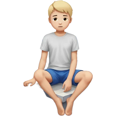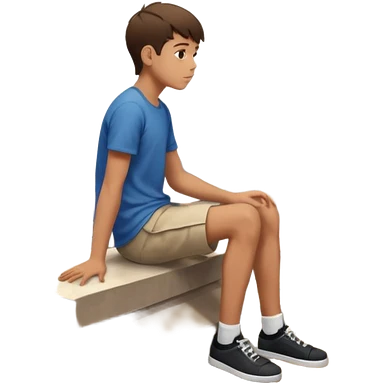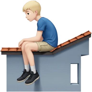 Ragazzo seduto su un tetto di un palazzo, con le gambe a penzoloni sul vuoto in 2d qundi di profilo emoji