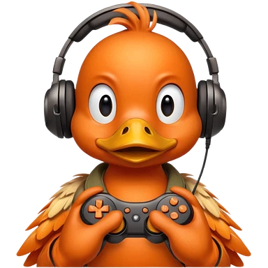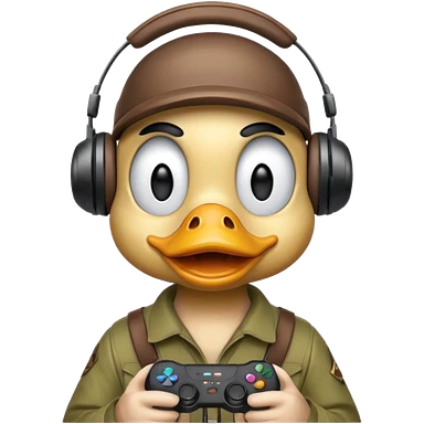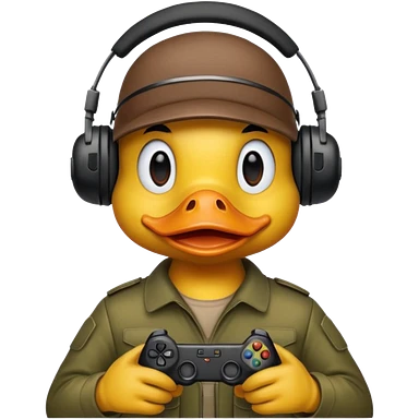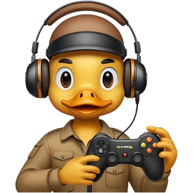 Gamer duck playing first person shooter game emoji