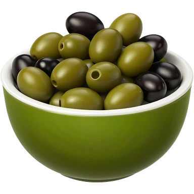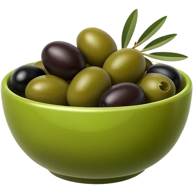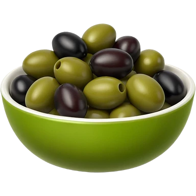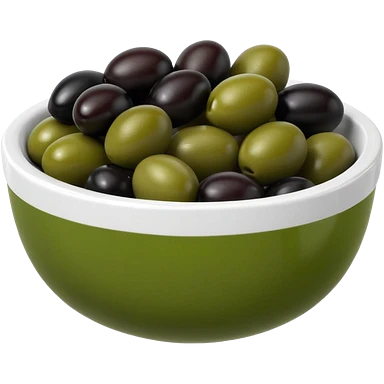 olives object icon, black and green olives in a small bowl, glossy look, 3D cartoon, mobile game icon style, clean background, no text, no watermark emoji