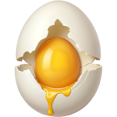 egg object icon, cracked egg with yolk, 3D cartoon, mobile game icon style, clean background, no text, no watermark emoji
