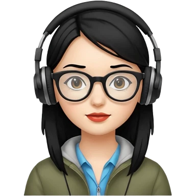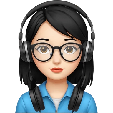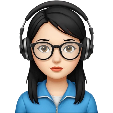 gamer, black hair girl with glasses, headphone emoji | AI Emoji Generator