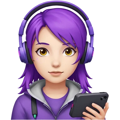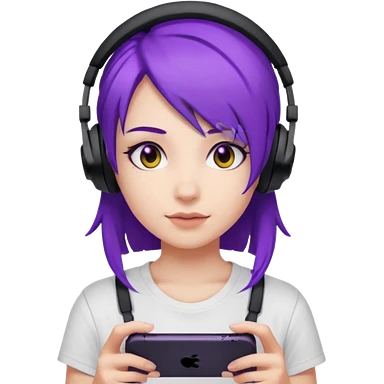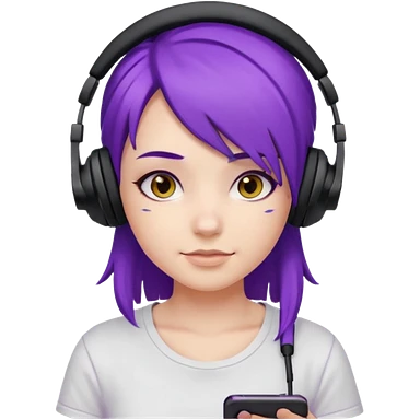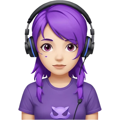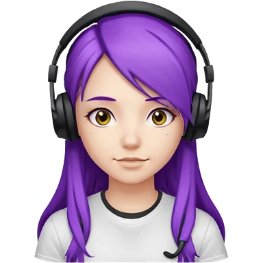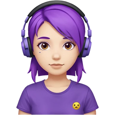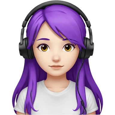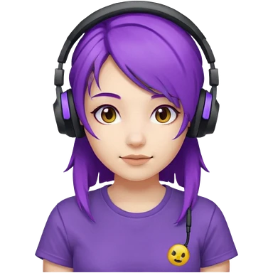 Gamer Girl with black Headset + Purple Hair, white T-shirt emoji | AI Emoji Generator