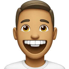 smiling coder with big glasses and buck teeth, simple, clear emoji style emoji