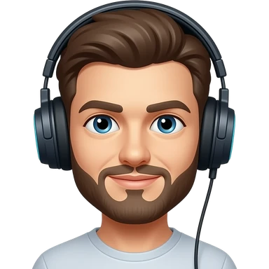 gamer with glasses, bald and muscular, with headset emoji