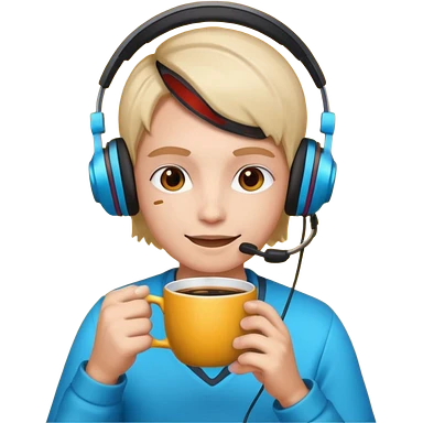 Gaming character drinking coffee - with vibrant colors emoji | AI Emoji Generator