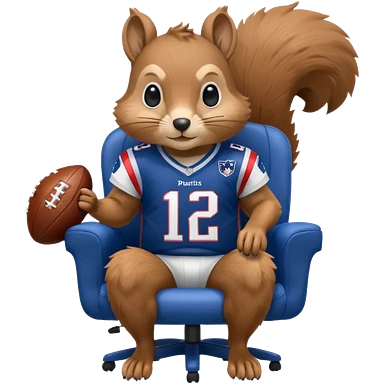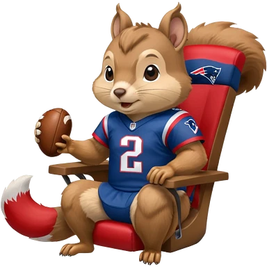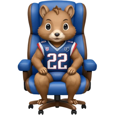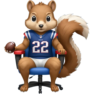 gaming chair with a squirrel sitting on it wearing patriots jersy emoji