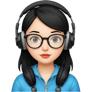 gamer, black hair girl with glasses, headphone, gamepad emoji
