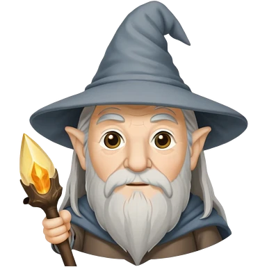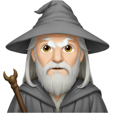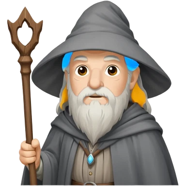 Gandalf the wizard with long white beard, pointy hat, and staff emoji