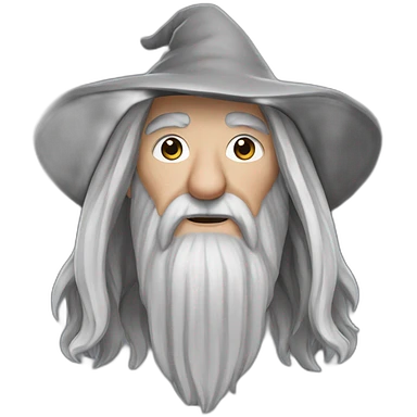 Gandalf the wizard with long white beard, pointy hat, and staff emoji