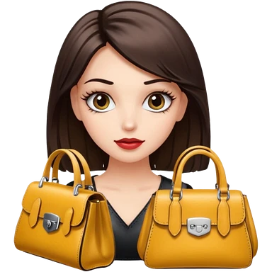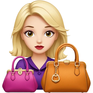Glam girl with eyelasher looking left and right between two purses, playful puzzled expression — can’t decide between two options emoji