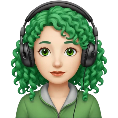 green haired earringed heaphone wearing middle aged woman very very curly long haired and hazel small eyes emoji