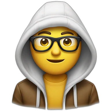 Homme blanc avec une capuche sur la tête et des lunettes emoji