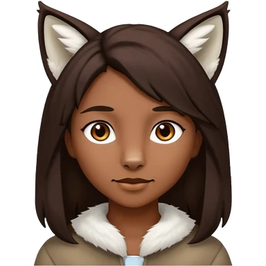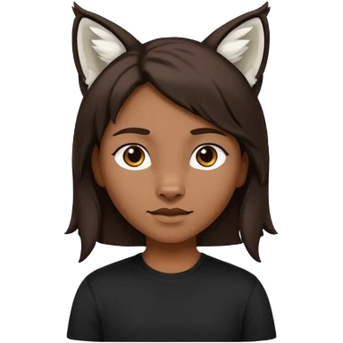 Garçon au cheveux marron foncé avec des oreilles de lynx blanc emoji | AI Emoji Generator