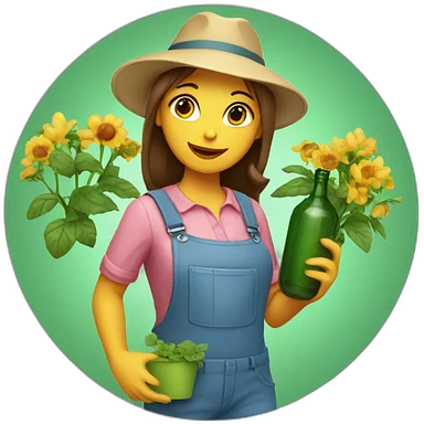 gardener girl in a hat with a bottle in her hands emoji