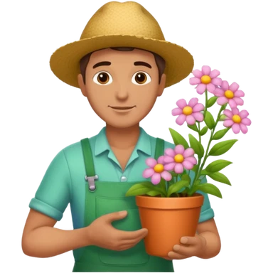 gardener with tanned skind and batman mask brown eyes and buzzcut emoji