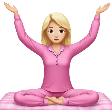 { "type": "human", "look": "pink pyjama lady, long sleeves, stretching arms", "description": "a woman in pink pyjamas stretching her arms after waking up" } emoji