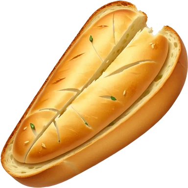 golden garlic bread, crisp edges, melted butter, herbs, soft fluffy interior, toasted glossy crust, parsley and garlic flecks, no plate or knife, soft lighting, emoji scale emoji