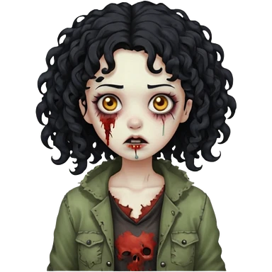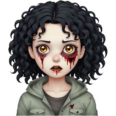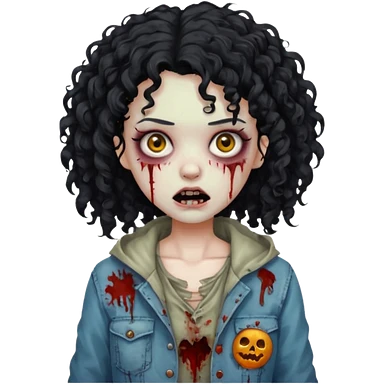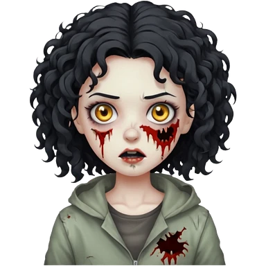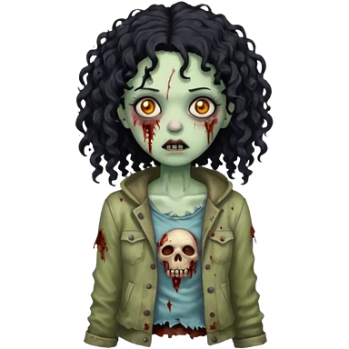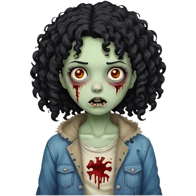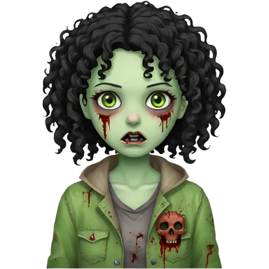 garota zumbi com cabelo cacheado preto emoji | AI Emoji Generator