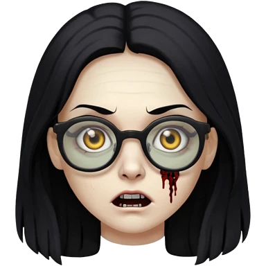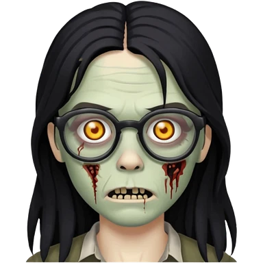 franja, oculos, cabelo preto e longo, e zumbi emoji