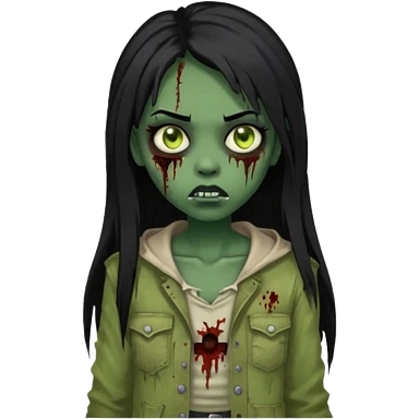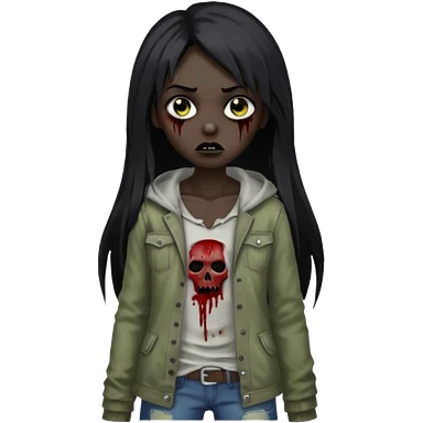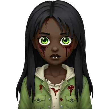 garota zumbi pele negra cabelo longo e liso preto emoji | AI Emoji Generator