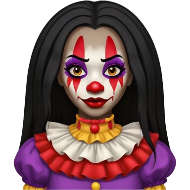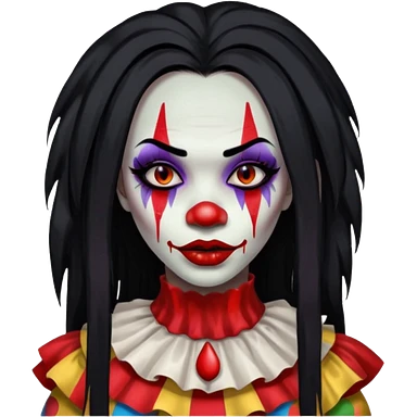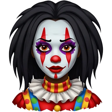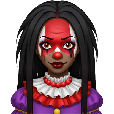 palhacinha sangrenta assassina pele negra de cabelo preto liso e longo emoji