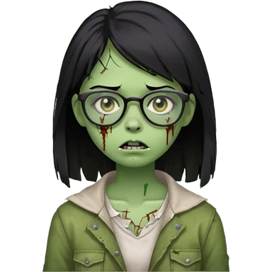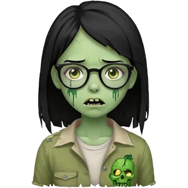 garota zumbi verde com o cabelo preto liso abaixo do ombro, que use óculos emoji | AI Emoji Generator