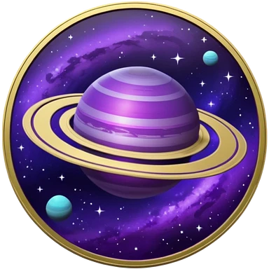 a space-themed coin with a purple saturn on it emoji