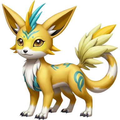 Tropical Tiny Marked Patterned Tribal Garurumon-Meloetta-Renamon-fusion-hybrid-creature (full body) emoji