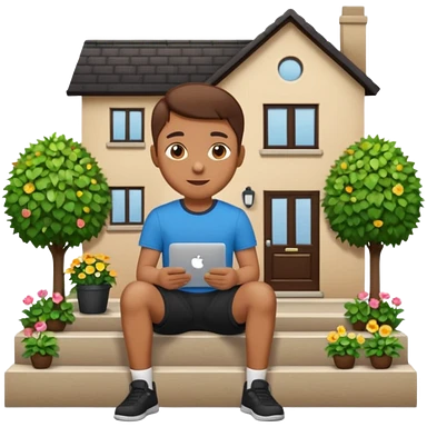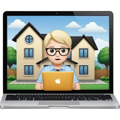 3rd emoji, but I want a blob to be inside thethat house, working in mac laptop, which is seen from window emoji
