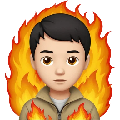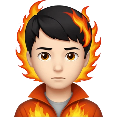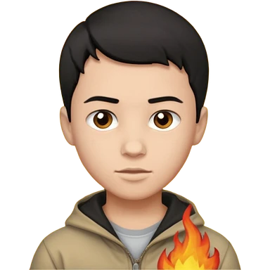 An Emoji of boy with short black hair, who can be described by three words: risk-taker, fire, realist emoji