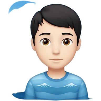 An Emoji of boy age in 10 with short black hair, who can be described by three words: perfectionist, air, ocean emoji