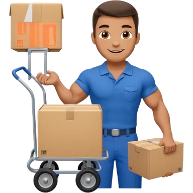 a mover with trolley loaded with a box emoji