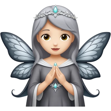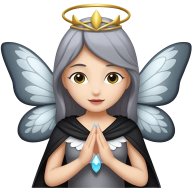 Gata gris oscura con blanco con dizfraz de hada emoji
