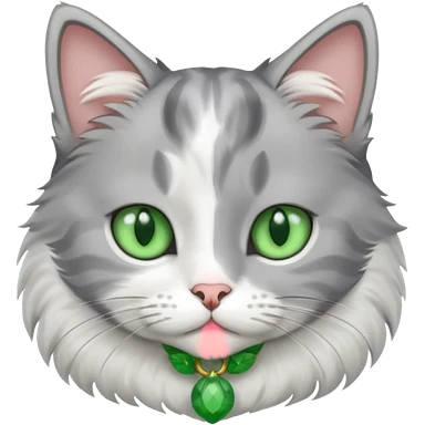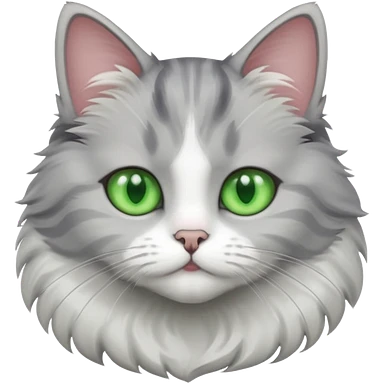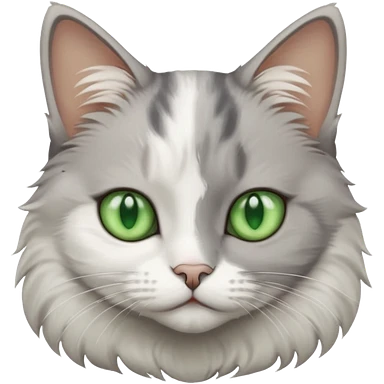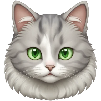 un gatico con ojos grandes, verdes agresivos, color blanco, gris y pardo manita altas y uñas afuera salu emoji