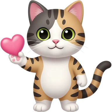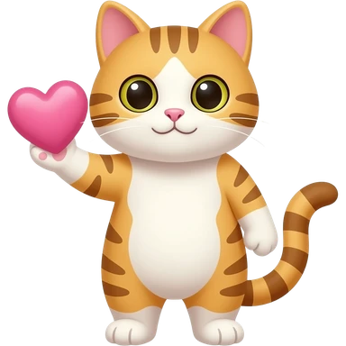 Gato con un corazón rosado en la mano emoji