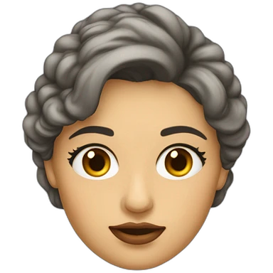 señora de mediana edad con pelo castaño con canas rizado corto y gafas de ojo de gato emoji