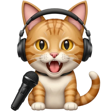gato gritando con un microfono y con auriculares emoji