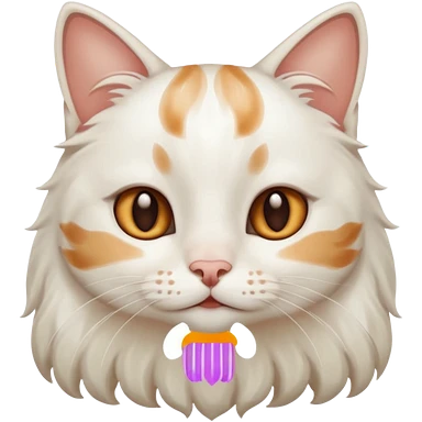 gato blanco con manchitas marrones y pelo largo con ojos de enamorado emoji