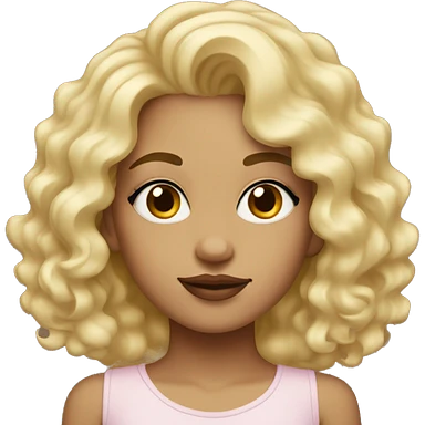 Girl with a light face tone, blonde, with curly hair, with eyelashes and lipstick emoji