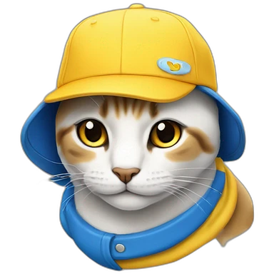 Gato color amarillo con una gorra azul que diga Puko emoji