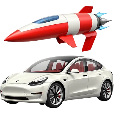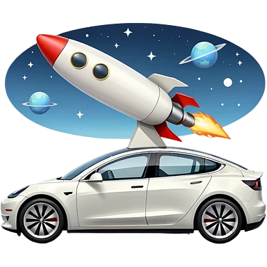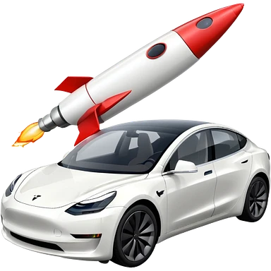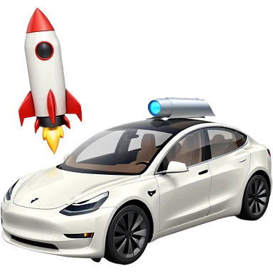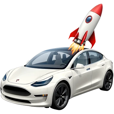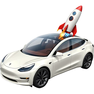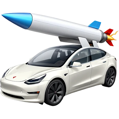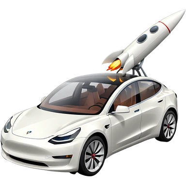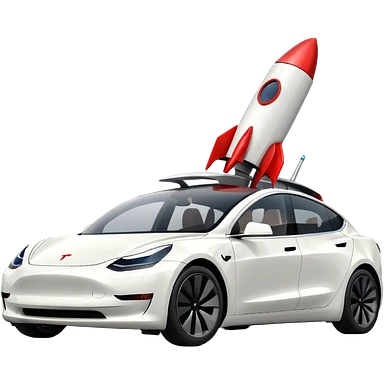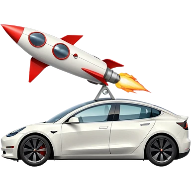 Tesla model 3 white with small rocket mounted flat on roof for extra propulsion emoji