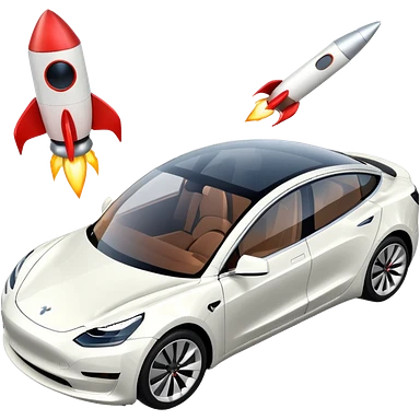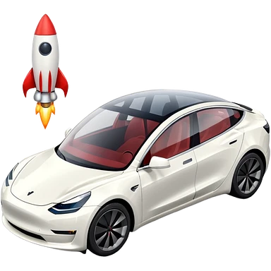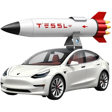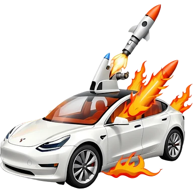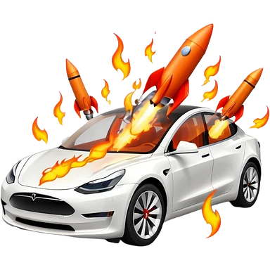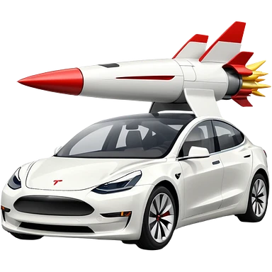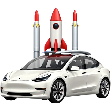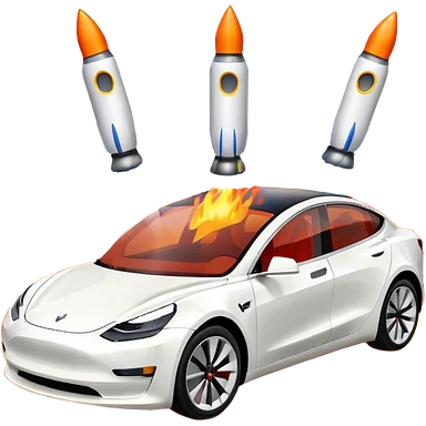 Tesla model 3 white. Rockets mounted on roof emoji