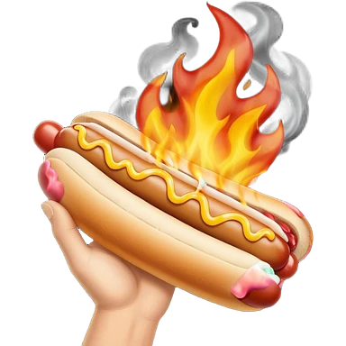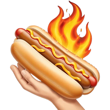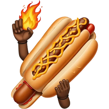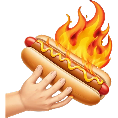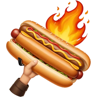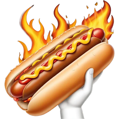 Gauntlet'd Fist Gripping a Flaming Hotdog emoji | AI Emoji Generator